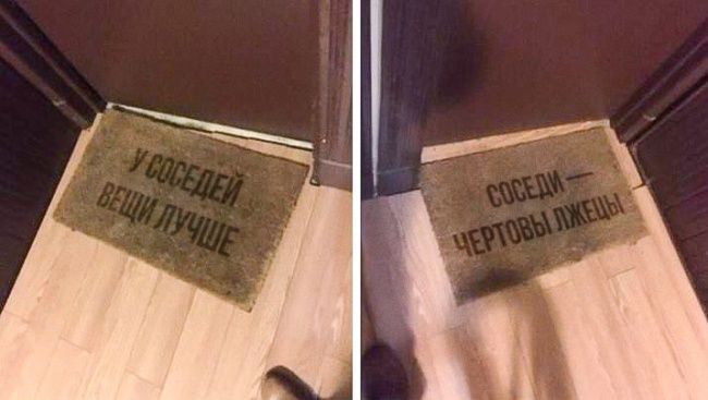 | Жизнь без соседей возможна, наверное, только на необитаемом острове. И невозможно предугадать, что вырастет из отношений с ними: настоящая дружба или маленькая война. «Я владелец собаки, живущий в районе с одними кошками. Все вокруг жаловались, что мой пес пугает их питомцев. Проблема решена» «Соседи сделали в заборе специальный вход для своей кошки с калиткой, ковриком и дверным звонком» «Соседская корова снова таскает доски из нашего сарая!» Хотелось бы посмотреть ситком про этих соседей «Наши соседи очень кропотливо помыли только свою половину ограды» Какое многообещающее начало знакомства «Сосед угостил целой тарелкой печенек. После того как мы их съели, на дне тарелки обнаружилась такая надпись» Просто гигантский слон во дворе дома напротив, подумаешь! «Пока я был на работе, парень сверху решил поменять у себя полы» Милое добрососедство — залог спокойной жизни Внимание! Дом находится под охраной Как заставить детей не играть с мячом о твою стену Соседи оставили за собой немного пугающий мусор «Каждый год я готовлю всем соседям пирог на День Благодарения. 8 часов и 40 пирогов спустя...» Ребята снизу повесили новую люстру «Ребята из моего района отлично отмечают 1 апреля» «Кто-то из соседей кормит моего кота. Надпись „Пожалуйста, не кормите меня, у меня есть дом" не помещалась, так что...» Как один маленький ангел может терроризировать целый дом Ну правда, не очень красиво получилось «Сосед подготовился к урагану. Кажется, он совсем не хочет оказаться в Изумрудном городе» Просто микроволновка вместо почтового ящика «Сосед был должен мне $ 288,66 за счет от ветеринара, после того как его собака напала на мою. Вот как он мне заплатил за день до того, как собирался подавать на него в суд» «Рождественское утро, 8:40. Рядом со мной живут люди, у которых очень четкий распорядок» Соседи, по всей видимости, отличные родители Когда Барби и Волан-де-Морт поселились рядом «Маленький мальчик из нашего района ходит по домам и продает самодельные метлы за $ 2. Даже демонстрирует их в действии. Фото говорит за себя...» source |