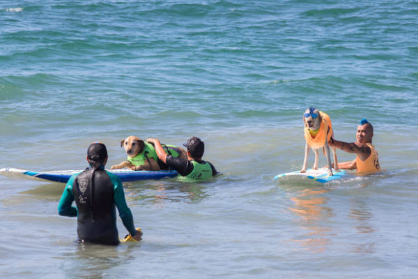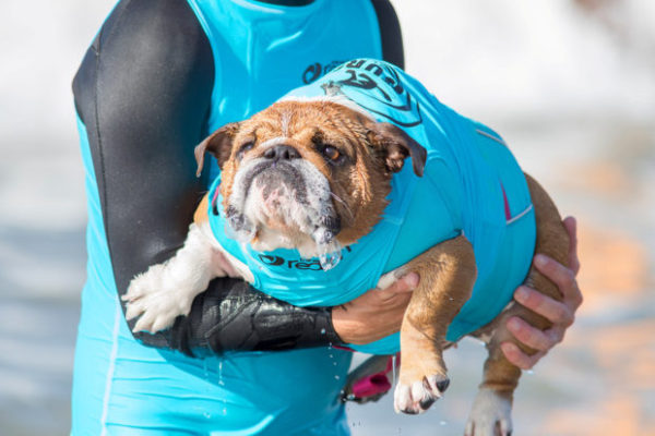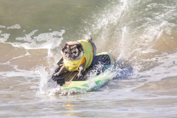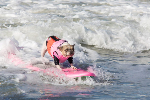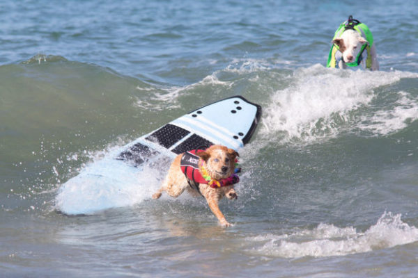 В Южной Калифорнии состоялись необычные соревнования по сёрфингу: вместо спортсменов на доски встали их собаки. Корги, лабрадоры, бульдоги и другие состязались в четырёх весовых категориях. Судьи оценивали их умение держать волну и выполнять различные трюки. Самые яркие фото с соревнований на Хантингтон-Бич — в подборке: