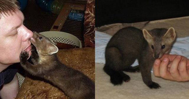 Вот такой пушистый комок обнаружил в подъезде своего дома один добросердечный мужчина, который понял, что без его помощи малыш погибнет. Зверек оказался совсем еще крошечным и мог пить только лишь молоко с пипетки. Кем было это загадочное животное удалось определить только тогда, когда оно подросло. Малыш подрос и превратился в прекрасного баргузинского соболя. У Лаки, так назвали соболя, повреждена задняя лапа, из-за чего он быстро устает во время прогулок, которые он все равно очень любит. Живет Лаки в доме своего хозяина, которого он очень полюбил.