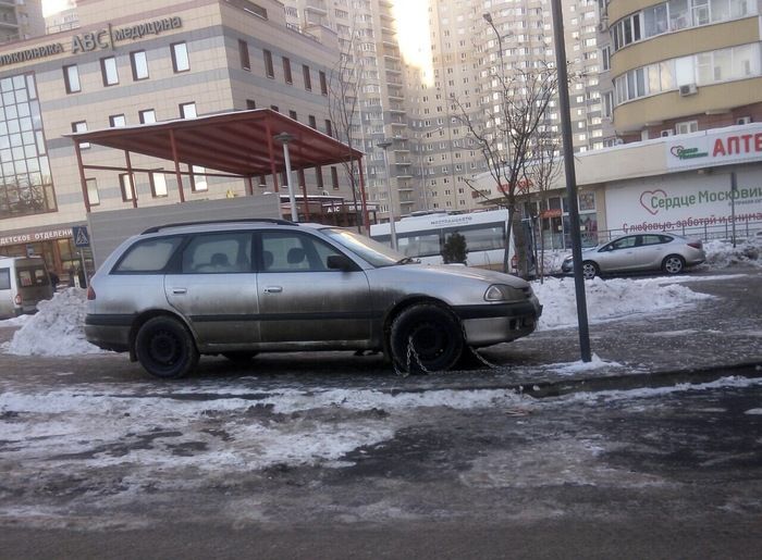 Оставив свой автомобиль на тротуаре, водитель решил, что он умнее других и придумал способ, который, по его мнению, должен был помешать эвакуаторщикам. Однако его метод оказался малоэффективным.