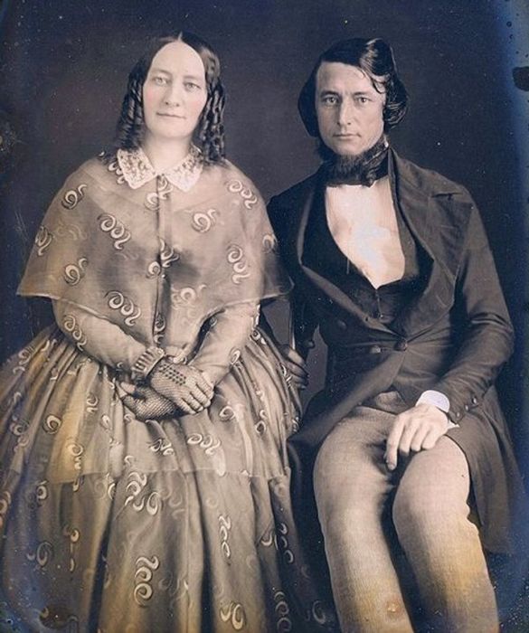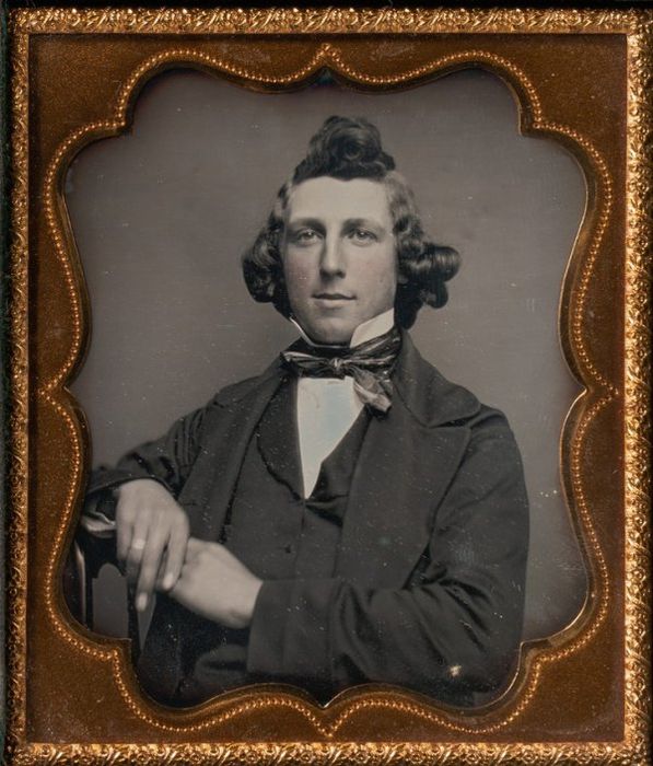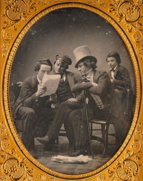 | В 1840–1850-х годах эти старинные фотографии называли "зеркалами с памятью". Это старый способ фотографирования на металлической пластинке, покрытой слоем пористого серебра, называемый дагеротипия. Эти золотоискатели были запечатлены около 1860 года Эдгар Аллан По — писатель, чьи произведения наполнены безграничной меланхолией. Кадр сделан в июне 1849 года Великие сказочники братья Вильгельм и Якоб Гримм в 1847 году Влюбленная пара Викторианской эпохи, 1840-е годы Немецкий философ Фридрих Вильгельм Йозеф Шеллинг был снят в 1848 году Дагеротип женщины с кошкой. Это одна из известных ранних фотографий кошки. А сделана она была между 1850 и 1855 годами Это молодой человек с завитыми волосами из 1850-х годов Брадобрея и его клиента запечатлели около 1850 года Портрет дагеротиписта, демонстрирующего снимки, был сделан в 1845 году Мужчину с рабочими инструментами сняли около 1851 года Мужчины за чтением газет прямиком из 1850 года Портрет мужчины середины XIX века Невеста того же времени Неизвестная девочка была запечатлена около 1850 года Портрет мужчины с девочкой, лошадью и собакой сделали около 1845 года Раскрашенный дагеротип принца Альберта изготовили в 1848 году Слепоглухая поэтесса Лора Бриджмен. Снимок сделан около 1855 года Мужчина в непромокаемой фуражке был запечатлен в 1854–1855 год Кузнец 1859–1860 годов Пожарный образца 1850 года