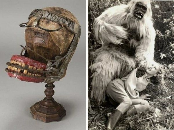 | Экспонаты из этой подборки удивят любого. Посмотрев на них в Сети, сразу же возникнет желание отправиться в кругосветное путешествие, чтобы увидеть эти вещи своими глазами. Позолоченный шлем сэра Кристофера Хаттона, сделанный в 1585 году, Виндзорский замок (королевские коллекции) Маска со съёмок первой части фильма «Техасская резня бензопилой», Национальный музей американской истории. Необычный экспонат, принимавший участие в съёмках фильма 1974 года, попал в руки специалистов, пытающихся предотвратить его разрушение. Маска была сделана из стекловолокна с жидким латексом. Со временем латекс перестал быть упругим, в связи с чем изделие стало невероятно хрупким. Работники музея приняли решение создать специальную опору, которая обеспечит изделию дополнительную защиту. Расписная жестяная маска в виде кота, художественный музей Сан-Антонио. Изделие изготовлено неизвестным народным художником из Боливии примерно в 1950-1960-х годах. Зубы и голова механизированной гориллы из фильма «Белый понго», музей науки Лос-Анджелеса. Это ужасающее орудие пыток из стали дерева, слоновой кости на самом деле приспособление, которое служило основой для резинового костюма гориллы. Устройство закреплялось вокруг лица актёра, провода и небольшие рычаги крепились к его челюсти. Человек мог заставлять гориллу фыркать, шевелить ноздрями, открывать рот и рычать. Нефритовый погребальный костюм, сделанный из 4248 кусочков нефрита, музей Сюйчжоу Нефритовые погребальные костюмы — это практика династии Хань, правление которой осуществлялось приблизительно с 206 года до н. э. — 8 года н. э. Костюмы принадлежали родственникам императорской семьи и другим высокопоставленным аристократам. Голова человека с красными глазами, Национальный музей антропологии в Мексике. Исследователи считают, что артефакт изображает мужчину, который возможно был отравлен пульке — мексиканским алкогольным напитком из перебродившего сока агавы. Возраст находки датируется 1325-1521 годами н.э. Носки, которым 1500 лет, музей Альберта и Виктории в Лондоне. Египетские шерстяные носки, созданные для ношения с сандалиями, были обнаружены в 19 веке. Противогаз для немецкой армейской посыльной собаки, военный мемориал Австралии. Необычное приспособление было найдено в начале 20 века. Маска не имеет газового баллона, поэтому учёные считают, что она могла быть пропитана особым химическим веществом, которое обеспечивало дополнительную защиту собаки. Терракотовая ваза, сделанная в форме клешни лобстера, Метрополитен-музей в Нью-Йорке. Ваза в форме клешни была изготовлен в Греции примерно в 450-400 годах до нашей эры. Известно, что существует всего девять таких странных древних сосудов для питья. Манекен головы, музей науки и промышленности в Манчестере. Столь странное приспособление использовалось преподавателями или учёными для демонстрации работы статического электричества. Человеку было достаточно потереть металлический стержень внизу, чтобы создать заряд, который проходил через голову манекена и заставлял его волосы вставать дыбом. Традиционный ирландский фонарь, вырезанный из репы, музей сельской жизни в Ирландии Мантия и платье Александры Фёдоровны, музей Московского Кремля. Русская императрица одевалась так во время своей коронации и коронации царя Николая II в 1896 году. Болотное мас