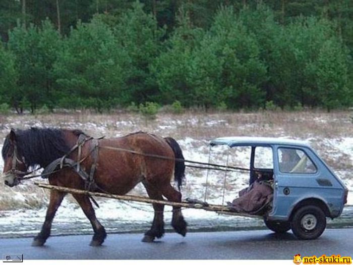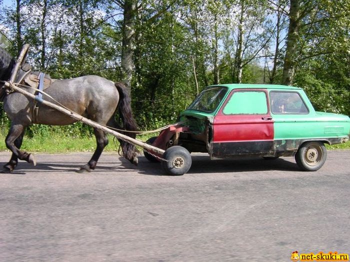 Каких бы крутых тачек не появлялось бы на улицах городов, гужевой транспорт в глубинке всегда остается актуальным. Правда, с телегами сейчас напряженка - не востребованный товар. Поэтому и появляются на проселочных дорогах уникальные автомобили на лошадиной тяге. ![]() ![]() ![]() ![]() ![]() ![]() ![]() ![]() ![]() ![]() ![]() ![]() ![]() ![]() ![]()