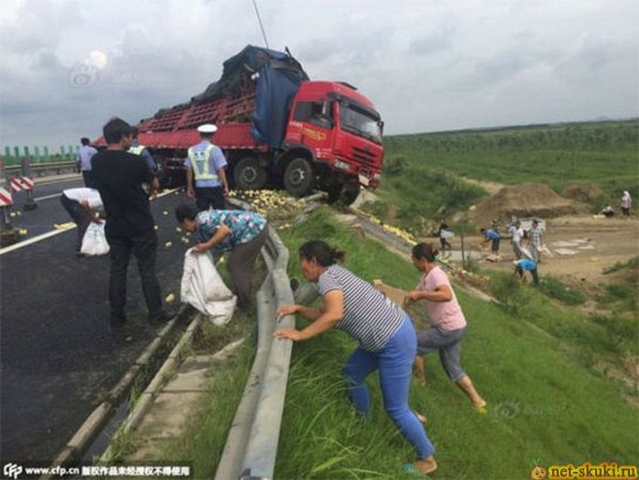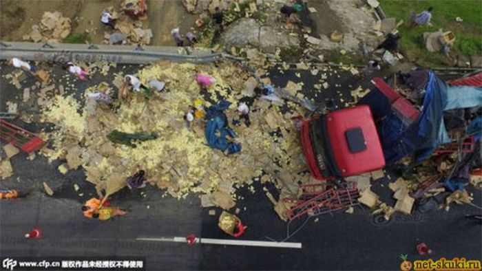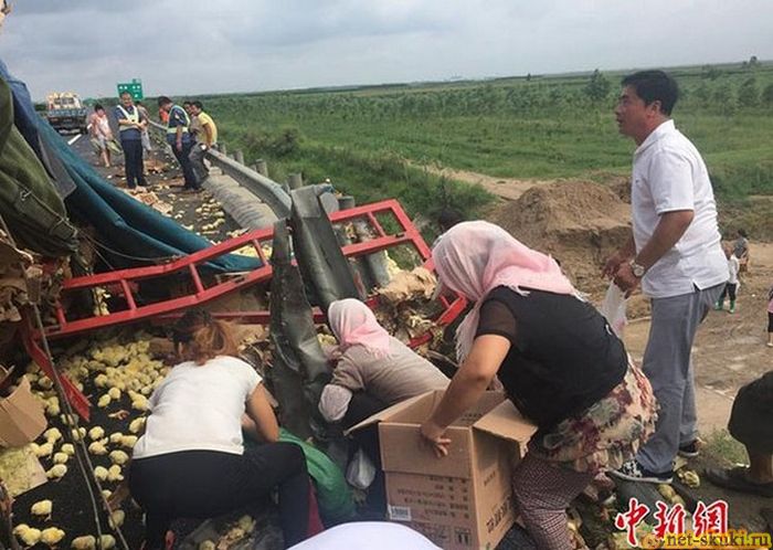 29.08.2015 В Китае перевернулся грузовик с цыплятами - 5 фото |