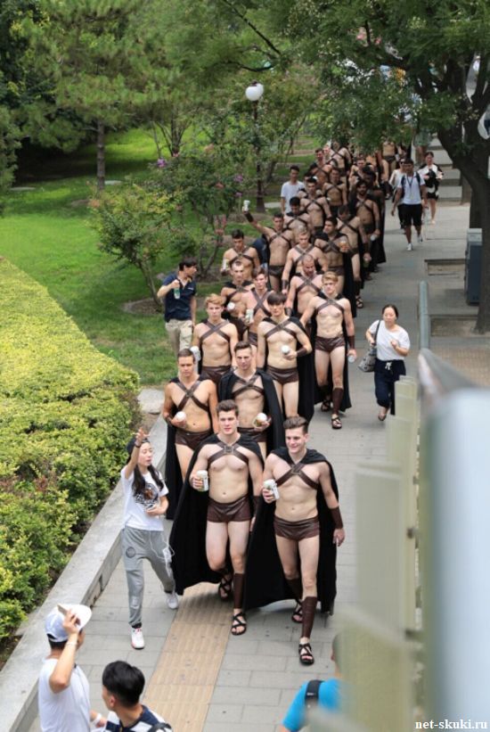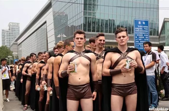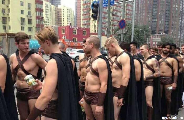 В Пекине полицейские задержали 100 мужчин западной внешности, одетых в костюмы древних спартанских воинов. Как оказалось, мужчины являются моделями и их услугами воспользовался один из местных ресторанов, решивший с размахом отпраздновать свой первый день рождения. По условиям промоакции, спортивные парни в полуобнаженном виде должны были доставлять сэндвичи офисным работникам. «Спартанцы» привлекли к себе внимание не только местных жителей, которые не упустили возможности сфотографироваться с ними, но и полиции. За нарушение общественного порядка все мужчины были задержаны. Администрация ресторана принесла извинения, сказав, что модели должны были стать символом здорового образа жизни. ![]() ![]() ![]() ![]() ![]() ![]() ![]() ![]() ![]() ![]() ![]()