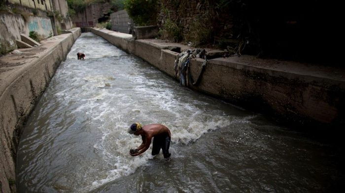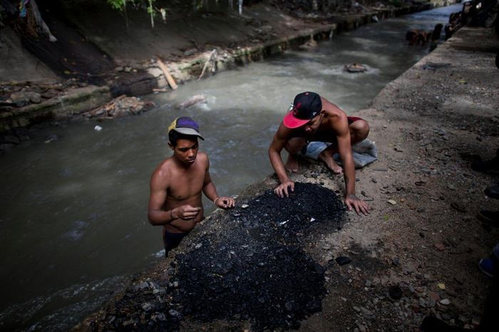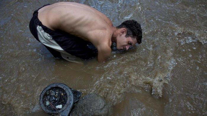Некогда богатая страна - Венесуэла сейчас является одной из беднейших. На это сказались мировой экономический кризис и падение цен на нефть. Многие люди в полном отчаянии, и пытаются найти любые способы заработать. В этой фотоподборке молодые парни копаются в жиже канализационного коллектора в поисках потерянных драгоценностей людьми. Найти серебро или золото - большая удача для них.