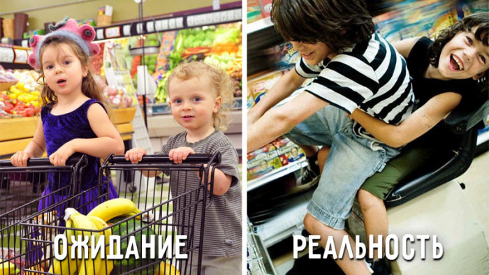 | Молодые и неопытные родители во многом идеализируют процесс воспитания своего ребенка и поэтому впоследствии их ожидания серьезно отличаются от реальности. Смотрим и сравниваем... Помощь в домашних хлопотах Поход в магазин Милый ангелок Дружные братья Рисование Время вдвоем, пока дети спят Развивающие игры Стильная современная мама Празднование Дня рождения