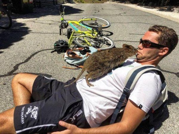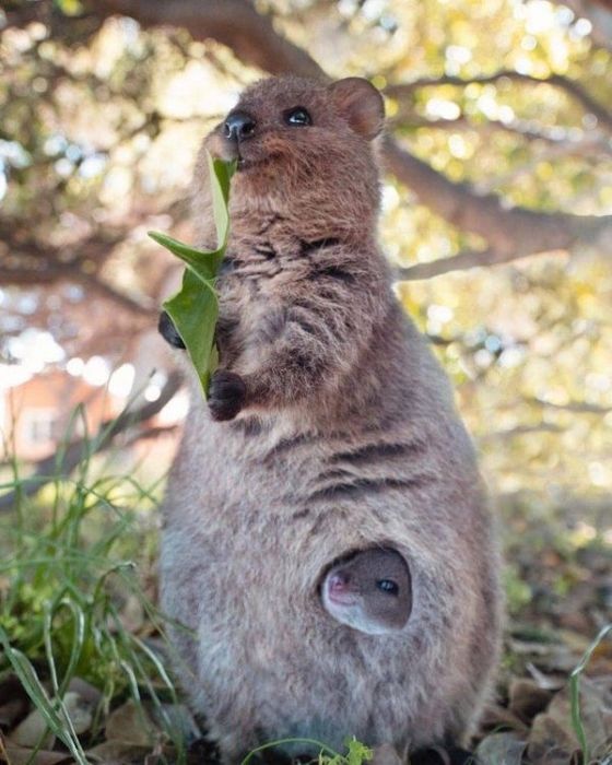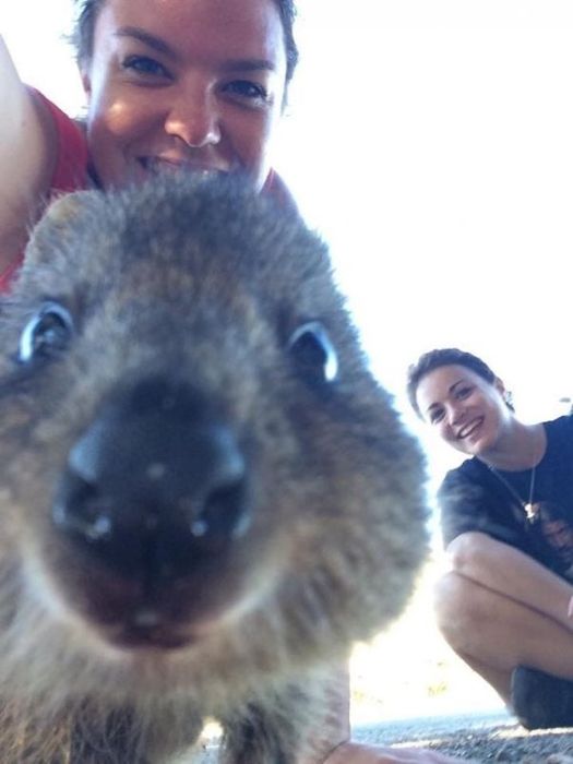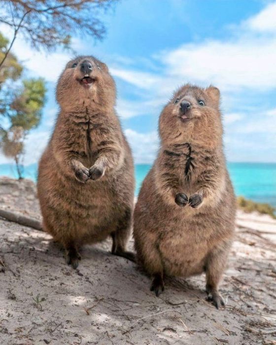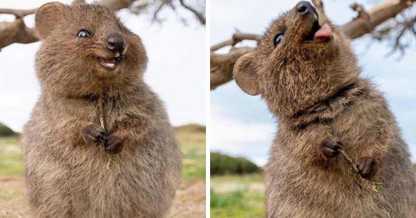 Квокка относится к семейству кенгуру и валлаби, их родина Австралия. Эти небольшие зверьки весят всего 2-2,5 килограмма. Квокки крайне дружелюбные создания, которые не боятся человека и с удовольствием принимают от него угощения и внимание. Впервые квокки были обнаружены в 1696 году. Ранее считалось, что они являются разновидностью гигантских крыс. Тысячи туристов готовы отправиться на материк только ради того, чтобы увидеть этих созданий вживую. Квокки стали известны всему миру благодаря своей фирменной улыбке. Почему они же улыбаются? В действительности улыбка квокки - это результат расслабления мышц после пережёвывания жёсткой и часто ядовитой растительности. Кстати, квокки способны выносить и родить за раз лишь одного детёныша. В сумке матери он находится до полугода. Но так или иначе, квокка кому угодно поднимет настроение одним своим видом. Хочется верить, что эти пушистые малыши действительно улыбаются, потому что они рады нас видеть. Присутствие квокки сделает любой кадр супер эмоциональным Квоккам тоже не чужда романтика Кто здесь? Мечтательно жуёт листик, пока её детеныш улыбается фотографу Привет, я вас уже заждался Неужели вы это принесли для меня? Двое жизнерадостных друзей Квокка — настолько удивительный зверь, что улыбается даже во сне Парень, да ты ещё тот шутник Квокка запрыгнула на фотографа, чувствуя себя хозяйкой жизни